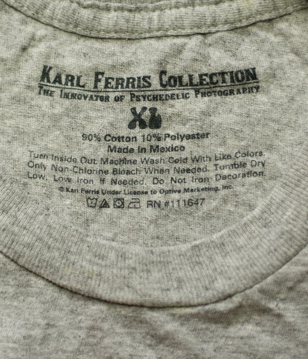 This Jimi Hendrix Experience Tour tee is part of the Guitar God collection of limited run and sample t-shirts and sweatshirts, created by the original king of psychedelic photography, Karl Ferris.