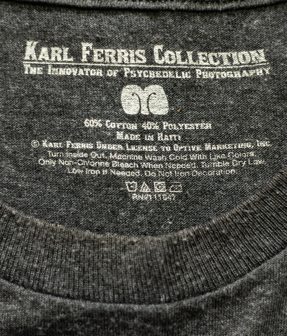 This Jimi Hendrix summer festival tour tee is part of the Guitar God collection of limited run and sample t-shirts and sweatshirts, created by the original king of psychedelic photography, Karl Ferris.