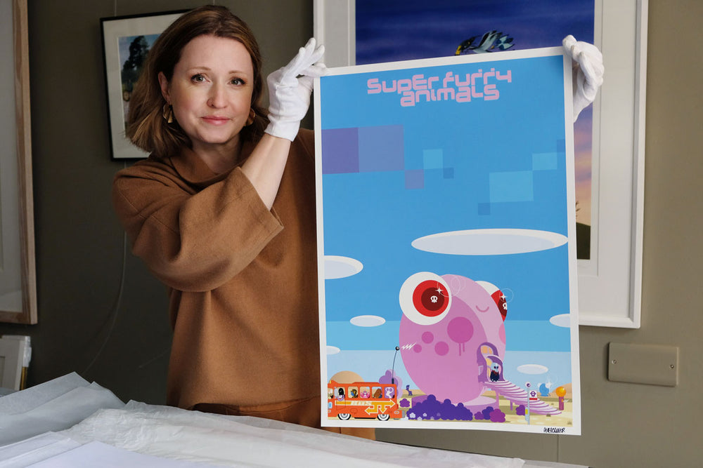 This limited edition print by Pete Fowler features a version of his unmistakable stylings for Super Furry Animals and their Rings Around The World inner sleeve artwork.